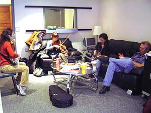 とても有名なスタジオらしく、ジョンハート・フォード、カントリースターのシャナイア・トゥエイン、ウィリー・ネルソン等が以前ここでレコーディングしたそうです。 スタジオへ入ると、今日のゲストミュージシャン、デイビッド・グリアーがギターのチューニングをしていたのでビックリ! 今日の予定では彼は2時到着だったはず。。。あれ?と思いながらも「久しぶり〜!」などの挨拶をしていると、もうひとりのゲストミュージシャン、バイロン・ハウスもすでに到着していました。 彼とは初対面。。。『どんな人なんだろう?』と不安を抱いていましたが、とっても優しそうな感じの人でひと安心。。。 そして今日はエンジニアのエリックがアリソンのツアーに同行していていない為、代わりに彼の友人のエンジニア、チャッドが来てくれました。 彼がスタジオ内を案内してくれた後、早速今日の録音曲をデイビッド&バイロンと打ち合わせ。