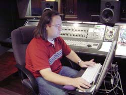 今日の録音曲は全てオリジナルのインストで、全4曲。お昼前にデイビッド参加の2曲が終了しました。 デイビッドは録音中、自分のソロに納得がいかず「畜生〜!」などのような言葉を連発していました。 前回の録音でもそうでしたが頑固なまでに妥協せず完璧なサウンドを創っている姿はまさにトップミュー ジシャン。豊かな発想と表現力を魅せられ、同時にとてつも無く大きな存在を感じました。 ![]() ← David Grier