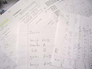 簡単な曲構成とコード進行を渡し彼等の前で軽く演奏してみせると、彼等がすらすらメモを取り、ちょっと練習してからすぐに録音に入るのです!