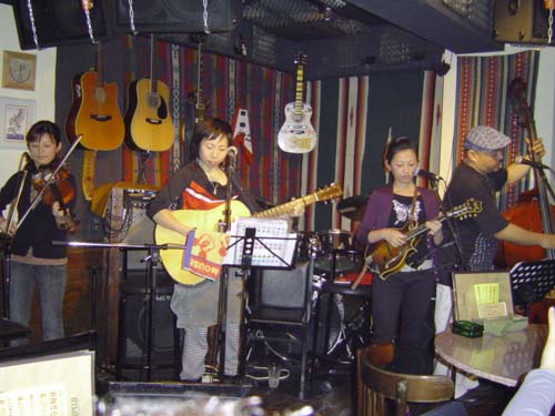 Live at Tupelo 04/23/2005 西中洲にあるアメリカン・カントリースタイルのレストランバー『Tupelo』。アコースティックを中心にほぼ毎日ライブもあり、メニューも豊富で(特にハンバーグは美味!)ゆっくり生演奏&食事が楽しめます!Hangrassはここで月1くらいライブをやっています。 この日の対バンは『10Shoes』(=店主s)Dream Boat店主の淳平さん、Tuoelo店主のフジキさん、そしてZunnyさんから成るバンド。各々の熟練した腕前で皆を魅了しています。そしてまたMCが最高なのです!!!