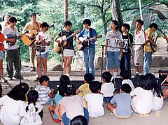 | We gathered youth players at the work shop stage. We named the band, "Yokayoka" band. The purpose was to give opportunity for little kids to listen bluegrass music. | ||